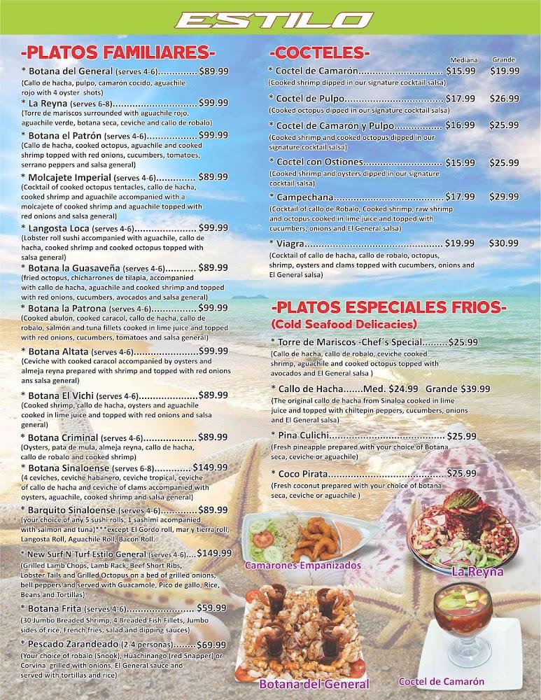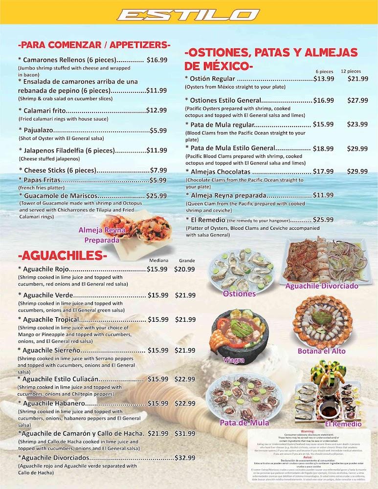 Mariscos El General boasts an extensive menu. It features more than 160 mouth-watering dishes, ranging from seafood specialties to Tex-Mex favorites. Must-try items include the Aguachile, a spicy yet refreshing dish, and their renowned ceviche.